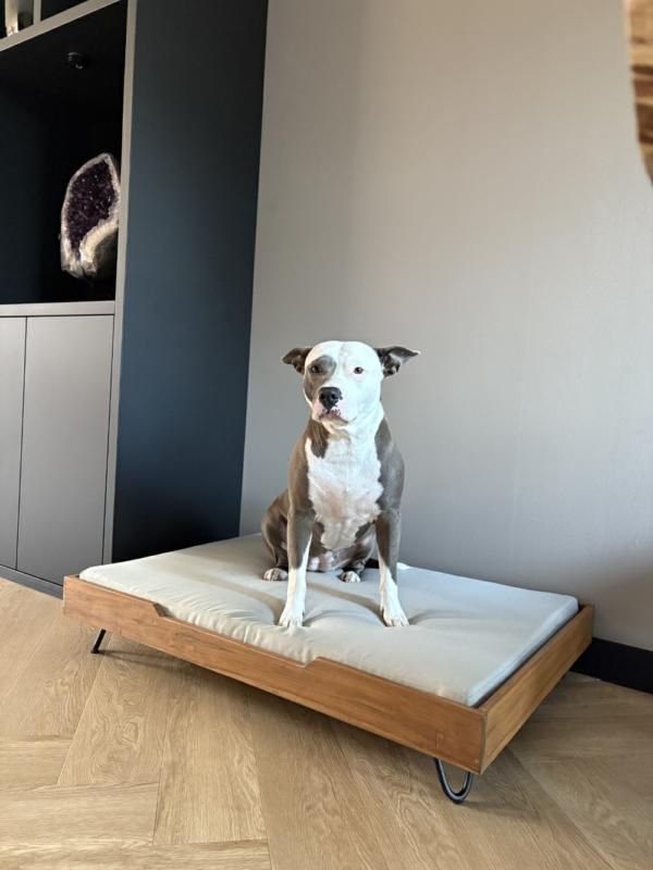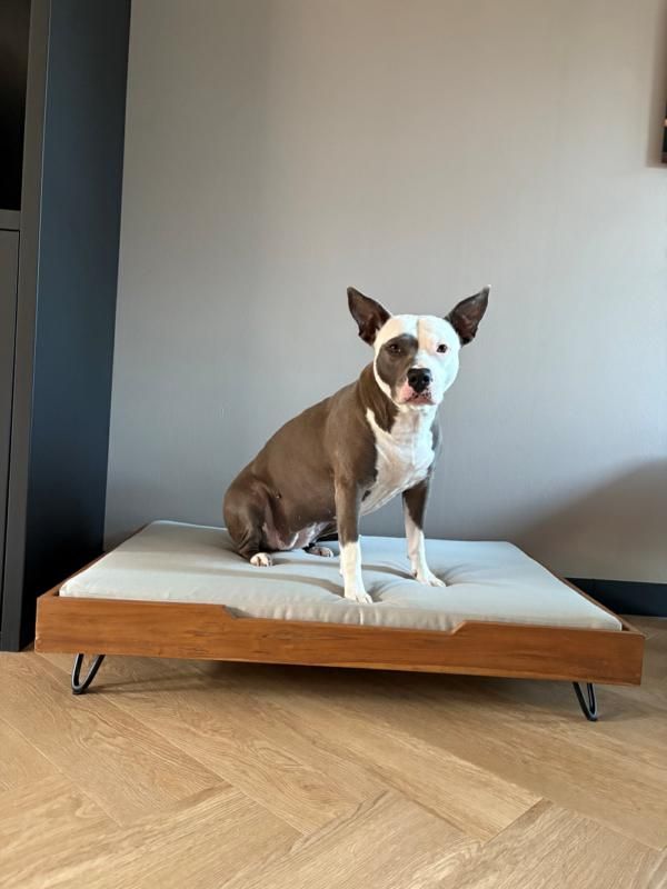 Luxurious dog bed made from solid teak wood with ergonomic memory foam mattress. Stylish, durable and comfortable – for customers who want only the best.